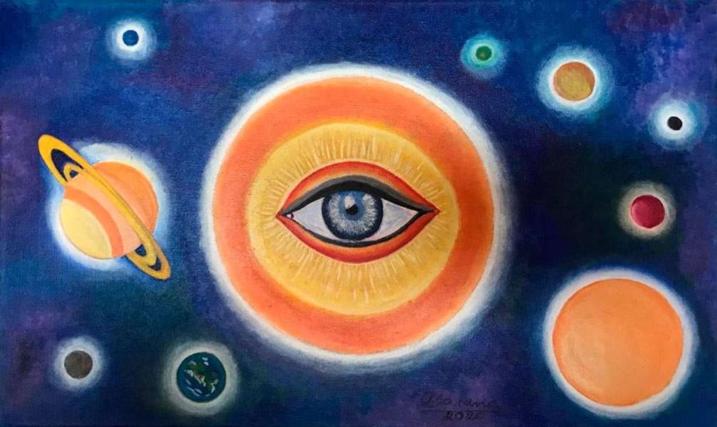 Colección Acrílicos Serie Metafisica Acrílicos sobre bastidor Pariendo Intuición Año 2020, 50 x 40 cm El Ojo de Horus Año 2022, 30 x 30 cm Nos observa el Universo Año 2020, 50 x 30 cm La Naturaleza nos observa Año 2022, 60 x 60 cm